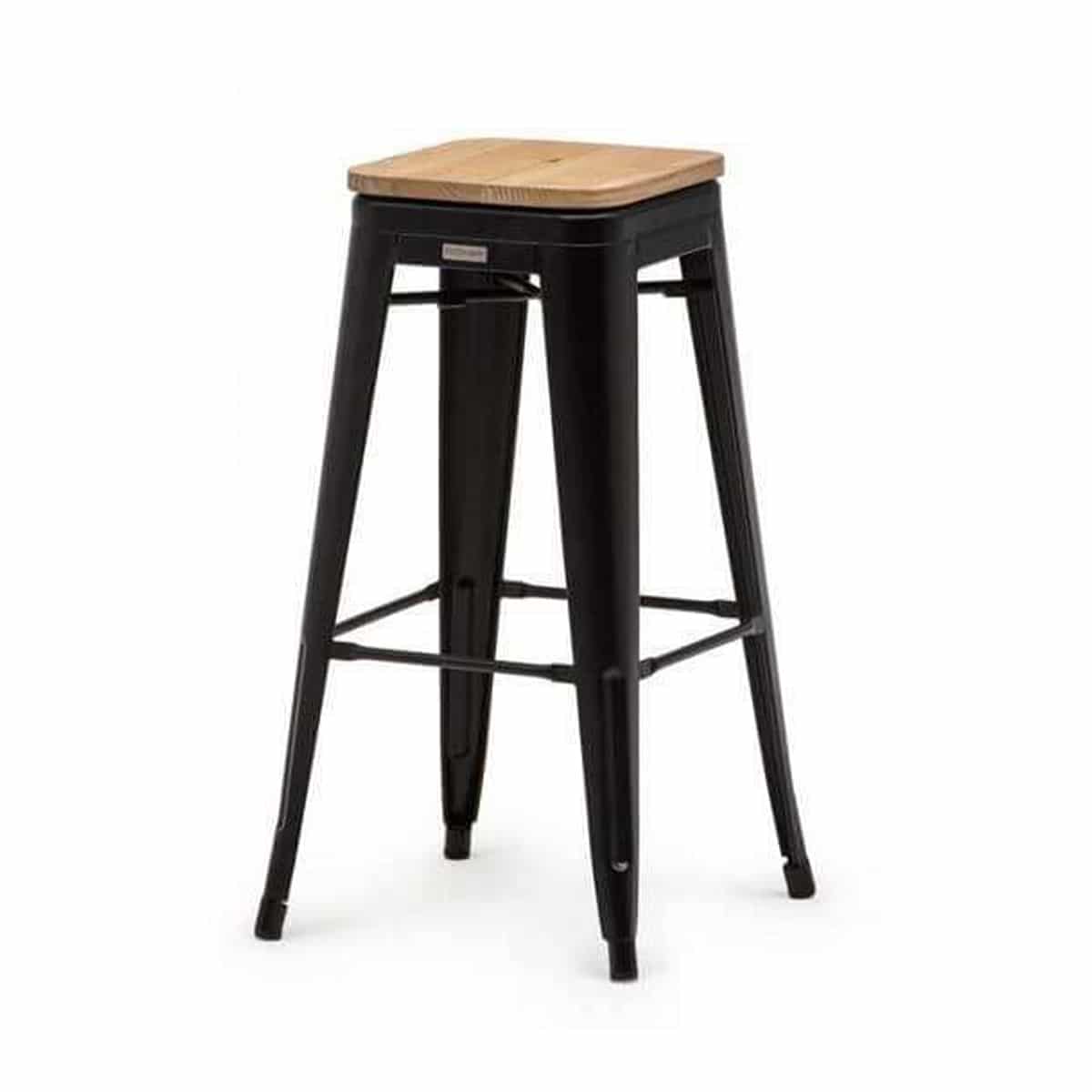 Barhocker „Tolix Style Wood“ Stahl schwarz