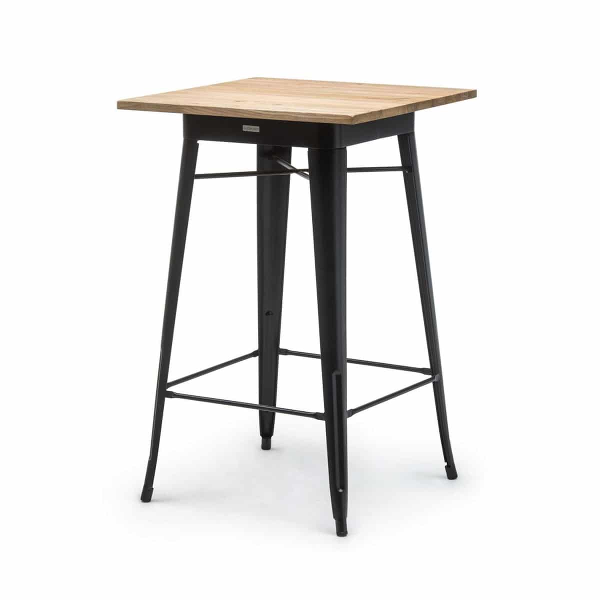 / Stehtisch „Tolix Style“ 70x70cm Stahl schwarz/Ulmenholz
